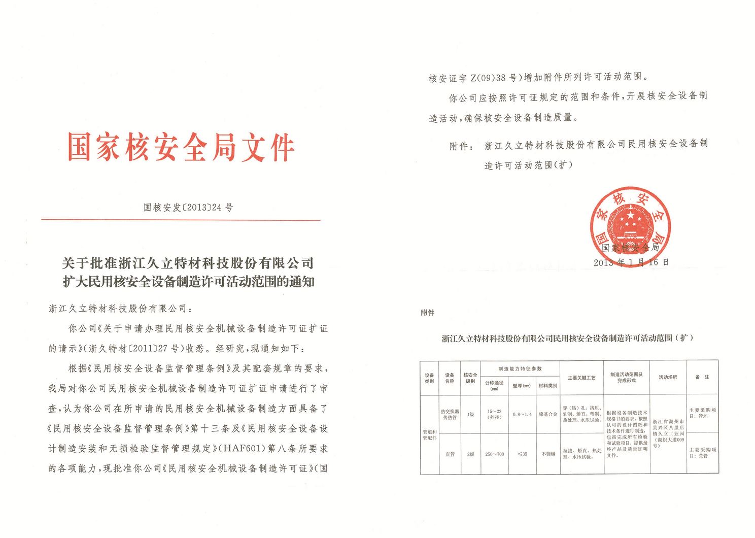 民(mín)用核安全設備製造許可(kě)證
