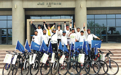公司(sī)積極響應(yīng)湖州市的號(hào)召,為更好地(dì)建設新(xīn)家園,拒絕霧霾,樹立生態、文明的湖州城市新形象,久立以“應對全球氣(qì)候變暖,共建綠色文明家園”為宗旨,積極參加“拒絕霧霾,從我做起”為主題的公(gōng)益騎行活動(dòng),倡(chàng)導低碳出行、健康出行、綠色出行、文明出行。