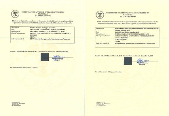 熱(rè)烈祝賀久立通過第7個船級社認證-意大利(RINA)認證