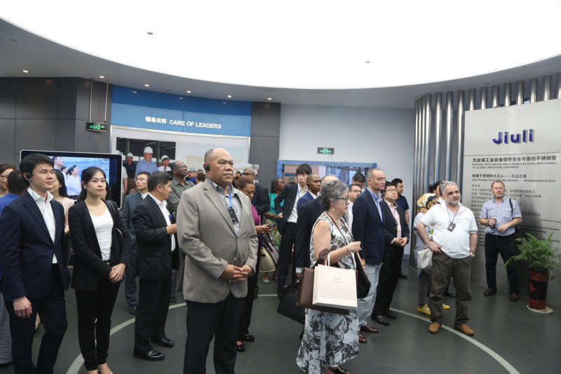 各使節在(zài)公司工作人員(yuán)的陪同(tóng)下(xià)參觀了(le)久立展廳及研發中心,了解了久立發展概況,並做相關交流。他們對久立的發(fā)展給予了肯定,對(duì)久立的熱情接待表示感謝。
