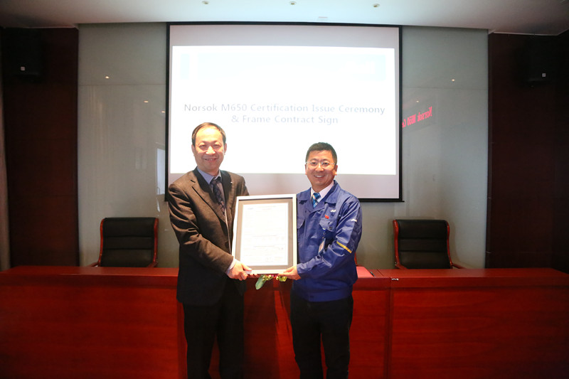 挪威國家石油標準NORSOK M-650是一個全球公認的特材(cái)製造商資格認可的標準。它是支持石油公司和天(tiān)然氣公司對其供應商的認可。現已被(bèi)挪威國家石油公司、康菲石油公司、埃克森美孚石油(yóu)公司、BP石油公司、殼牌石油公司和阿克-克瓦納(nà)集團所廣泛(fàn)采用。NORSOK M-650認證的通過無(wú)疑既是肯定,又是一種(zhǒng)激勵。它體(tǐ)現了全球石油天然氣行業(yè)對公(gōng)司產品的認可,為公司(sī)開拓更寬(kuān)廣的市場(chǎng)提(tí)供了契機(jī);也激勵了公司不斷提高產品、過程和服務質量,增加(jiā)客戶滿意度,為全球工業裝備提供自(zì)己安全(quán)可靠的產品。